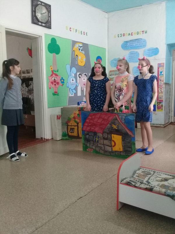 19 февраля 2018 года в гости к нам пришли бывшие выпускники детского сада «Алёнушка», а сегодня учащиеся Новиковского филиала Куйбышевской СОШ с театрализованным представлением по сказке «Три поросёнка».