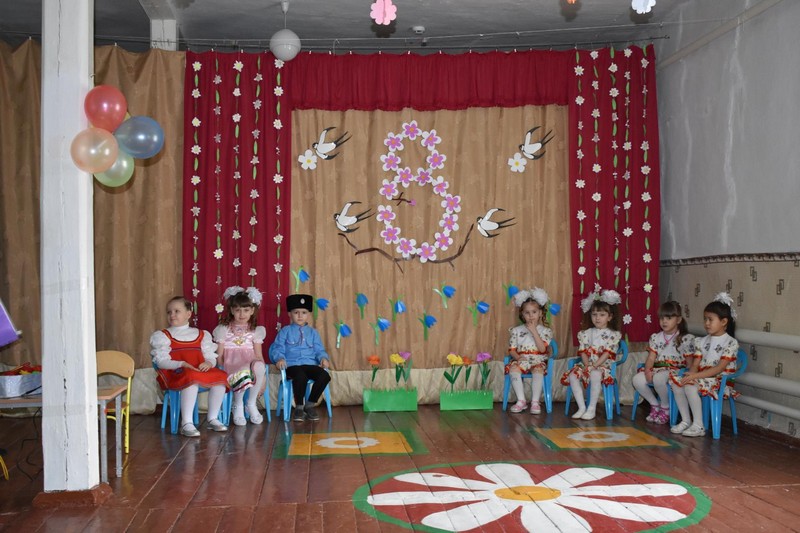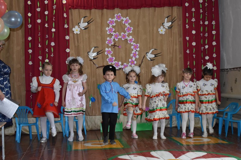 7 марта в детском саду прошёл утренник, посвященный 8 марта. Дети с воспитателем Терешковой Н.А. подготовили для мам концерт и интересные конкурсы, в которых мамы с удовольствием принимали участие. Дети поздравили мам и бабушек и подарили подарки, приготовленные своими руками.