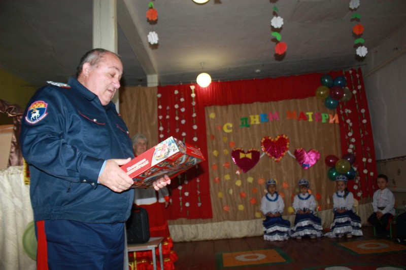 Родители с удовольствием слушали песни и стихи, смотрели танцы, водили дружный хоровод. На празднике присутствовали наши постоянные гости- казаки из юртового казачьего общества №Куйбышевский юрт». Атаман Ставицкий Б.В. поздравил мам и вручил детям подарки. В завершении утренника дети поздравили мам подарками, изготовленными своими руками.