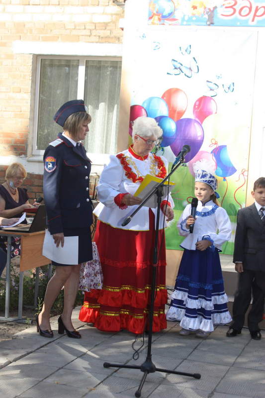 1 сентября – день знаний и начало учебного года. По традиции воспитанники детского сада «Алёнушка» пришли поздравить своих выпускников- первоклассников и всех ребят с началом учебного года. Казаки юртового казачьего общества «Станица Голодаевская» тоже приехали поздравить казачат первоклассников.