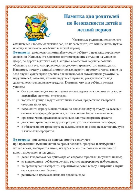 Памятка родителям по безопасности в летний период 03.06.2020 View the embedded image gallery online at: https://www.alenka.kuib-obr.ru/index.php/roditelyam/pamyatki?start=10#sigProIdcbe12d910e