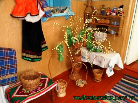 Для реализации программы духовно-нравственного воспитания и приобщения детей дошкольного возраста к истокам народного творчества создана комната быта Изба.